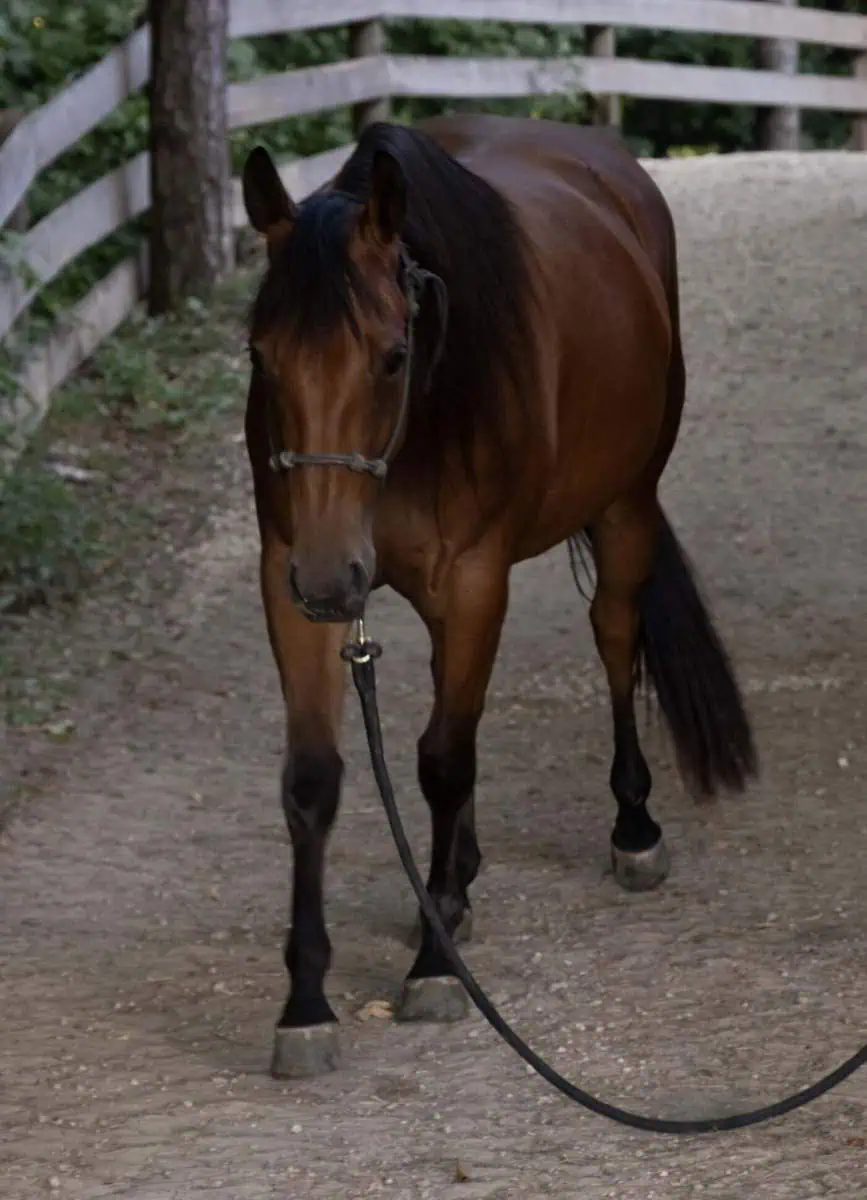 Pferd beim Training auf dem Biohof, Natur und Tierhaltung, ländliches Leben.